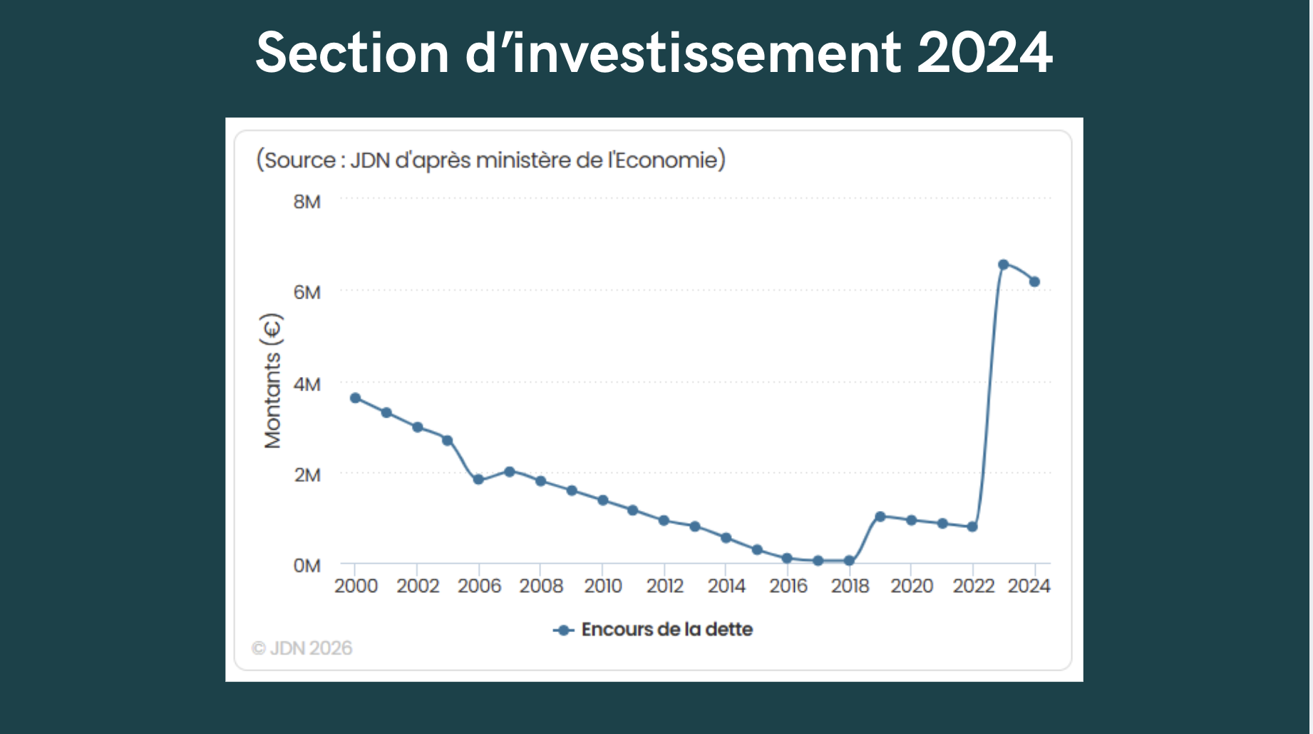Comme nous pouvons le constater sur ce graphique, depuis 25 ans, les élus ont mené une politique de réduction de la dette.